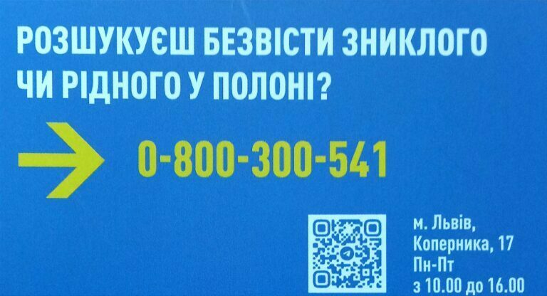 Якщо близька вам людина потрапила у полон або зникла безвісти, звертайтесь за допомогою у Західний…