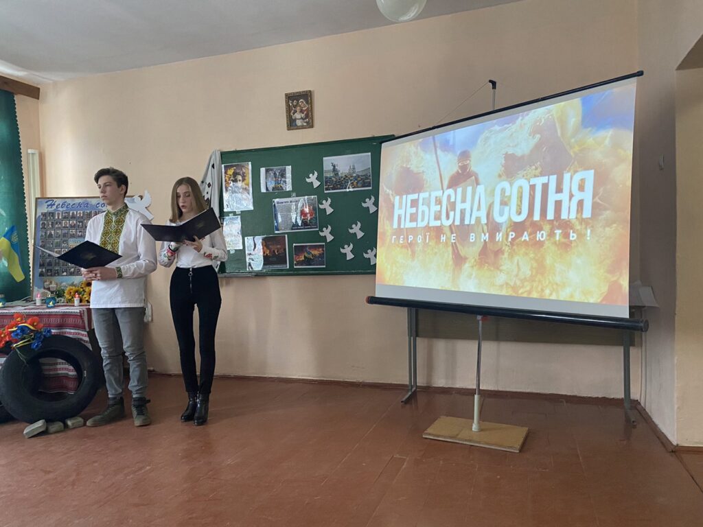 Цвіту нашого народу, його славним синам і донькам, які у розквіті сил віддали свою молодість, і, найдорожче, життя – студенти присвятили Гімн України, вірші та переглянули презентацію про хронологію подій 18-21 лютого і відеоролик про події того часу.