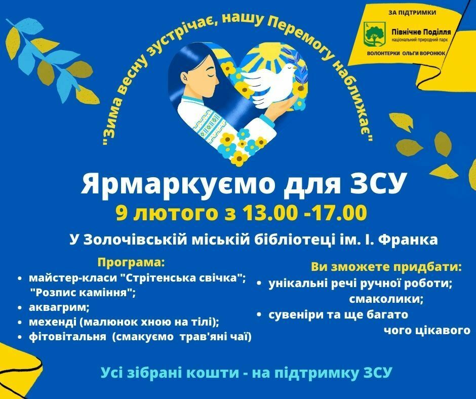 Ярмарок, присвячений до дня Стрітення, відбудеться 9 лютого 2023р. з 13 до 17 год. у Золочівській міській бібліотеці ім. І. Франка (вул. Чорновола,1)