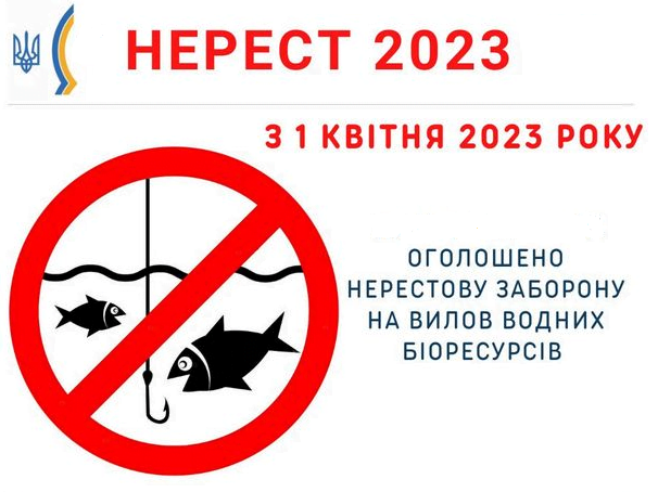 З 1 квітня 2023 року в 22 областях України розпочинається нерестова заборона на вилов водних біоресурсів. Також наразі триває заборона на вилов раків. Тривалість нерестової заборони відрізняється залежно від областей та водойм України.