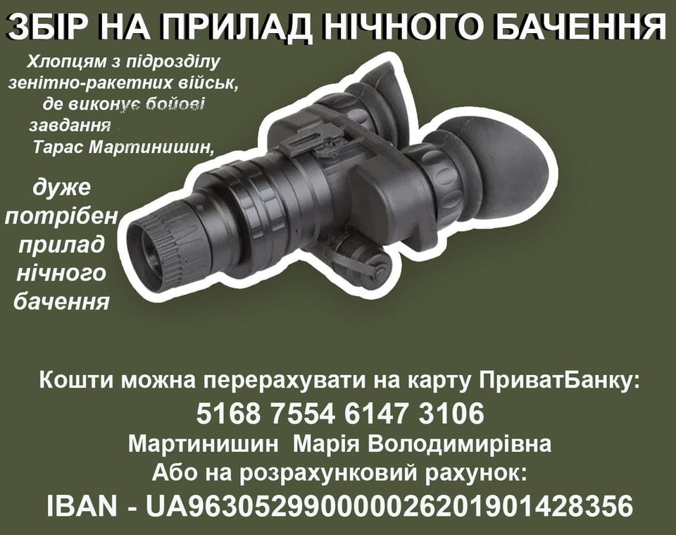 Хлопцям з підрозділу зенітно-ракетних військ, де виконує бойові завдання уродженець с. Колтів Тарас Мартинишин, дуже потрібен прилад нічного бачення.