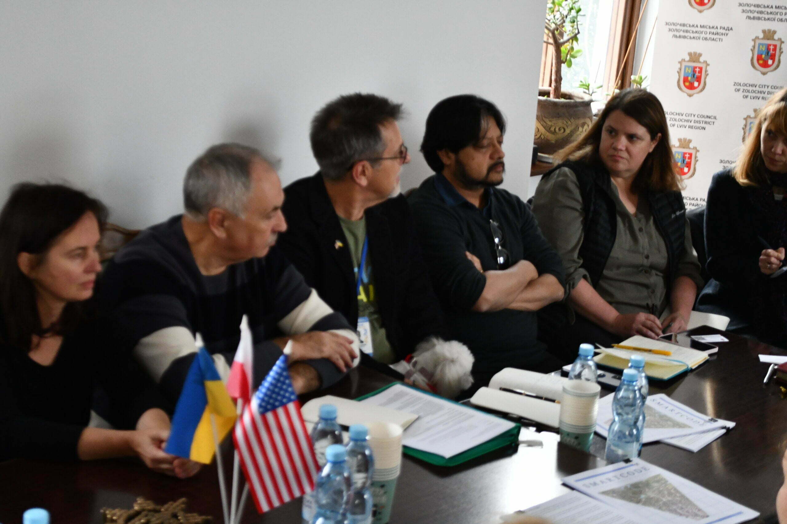 Впродовж шести днів у Золочеві перебувала делегація американських, польських та українських науковців-архітекторів з університету Нотр-Дам, НУ «Львівська політехніка», Краківського політехнічного університету, Вроцлавського університету науки та техніки, у складі якої були доктор архітектури, професор кафедри дизайну та основ архітектури Інституту архітектури Національного університету «Львівська політехніка» Юрій Криворучко, магістр права Ярина Воронич, Маріанна Кузато, Школа архітектури Університету Нотр-Дам, Рахул Ока, Школа глобальних відносин Університету Нотр-Дам Кео, консультанти – Сьюзан Хендерсон, Брайан Леммерман. Томаш Єленський, Краківський політехнічний університет, професор Вроцлавського політехнічного університету, заступник декана факультету архітектури Вавжинець Ціпсер, професор Магда Бєлоф, завідувач кафедри архітектури та урбаністики Харківської школи архітектури Національного університету «Львівська політехніка» Ольга Криворучко, магістр архітектури Ксенія Бевзюк, магістр архітектури Данило Галанджій, Олександр Чижевський – голова Спілки архітекторів.