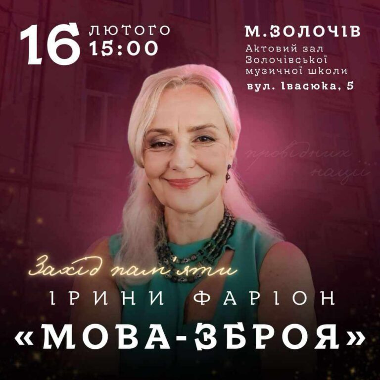 Запрошуємо на захід пам’яті Ірини Фаріон «Мова – зброя» 16 лютого 15:00 м. Золочів, актовий…