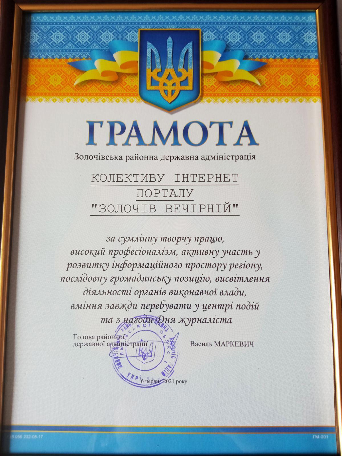 Голова Золочівської райдержадміністрації Василь Маркевич привітав працівників ЗМІ Золочівщини з нагоди Дня журналіста. Грамотою за…